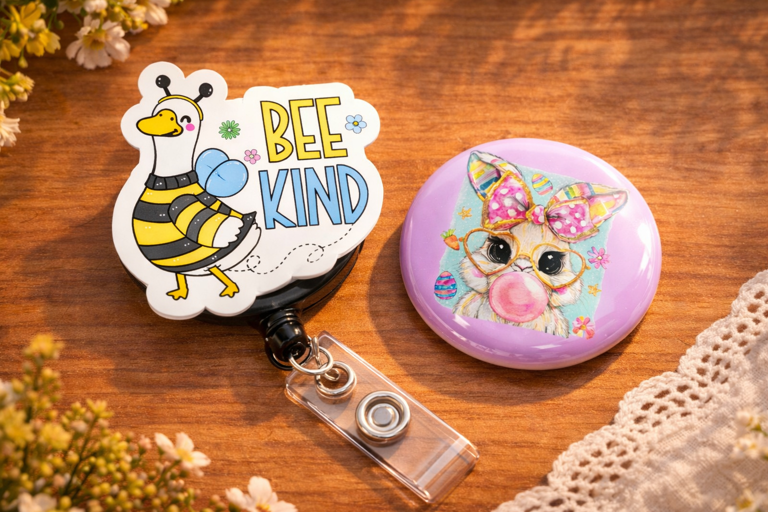 Fun and unique buttons that attach to the face of your badge reel, easily swapped for a fresh look.